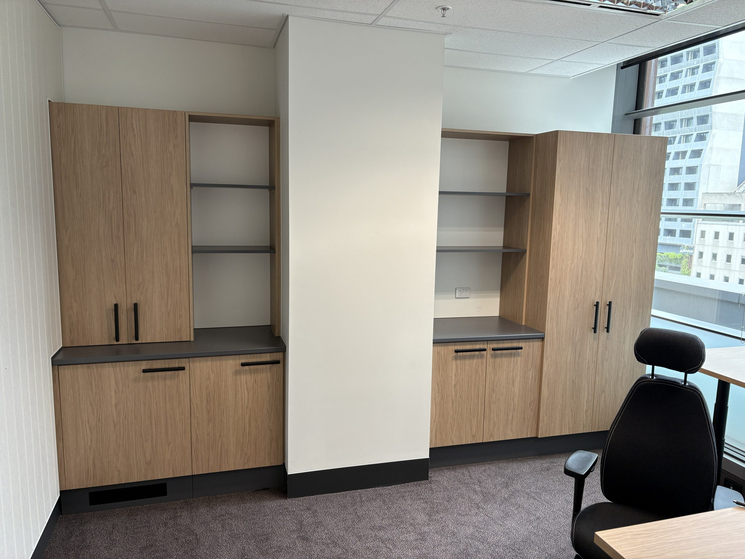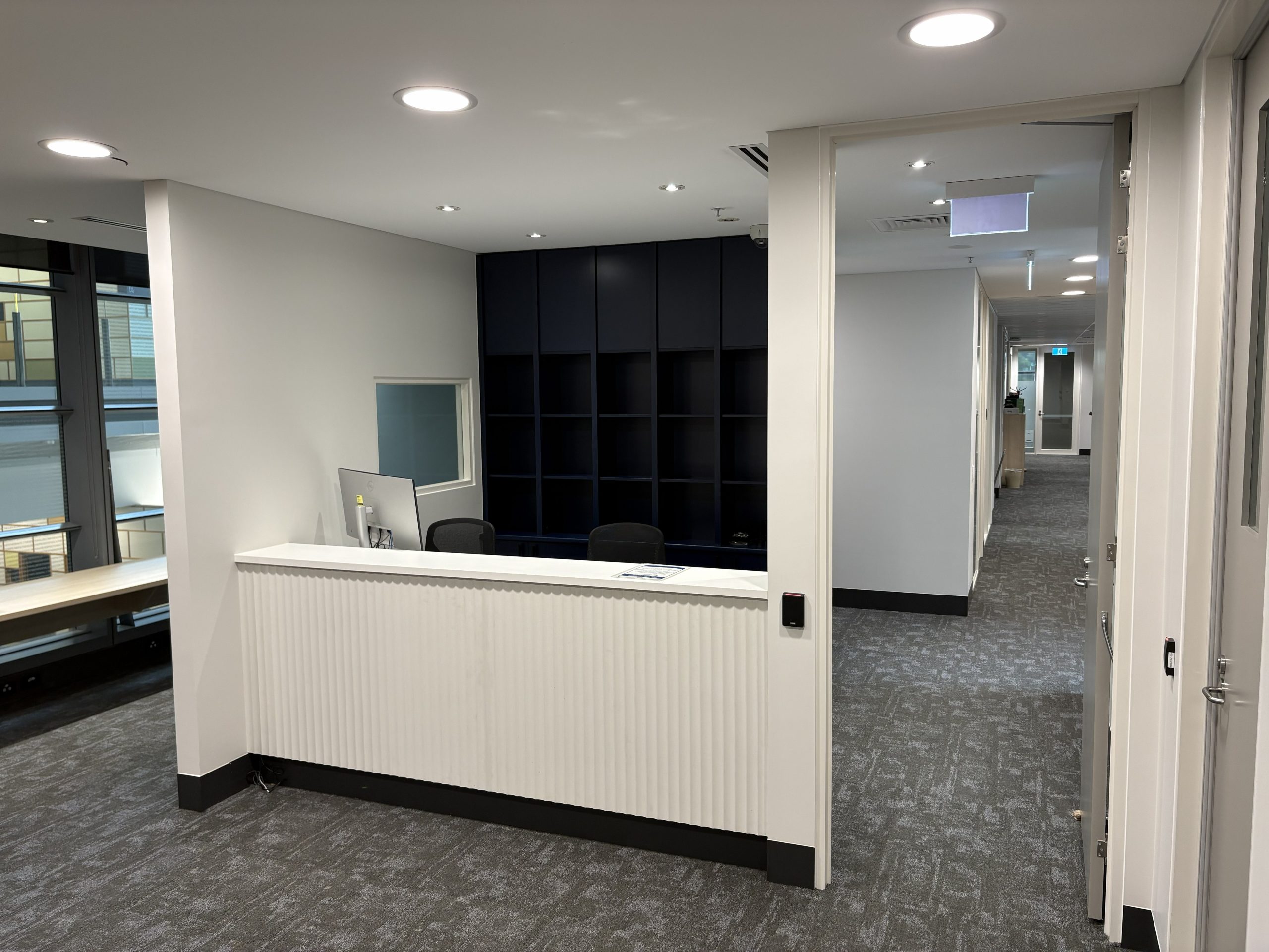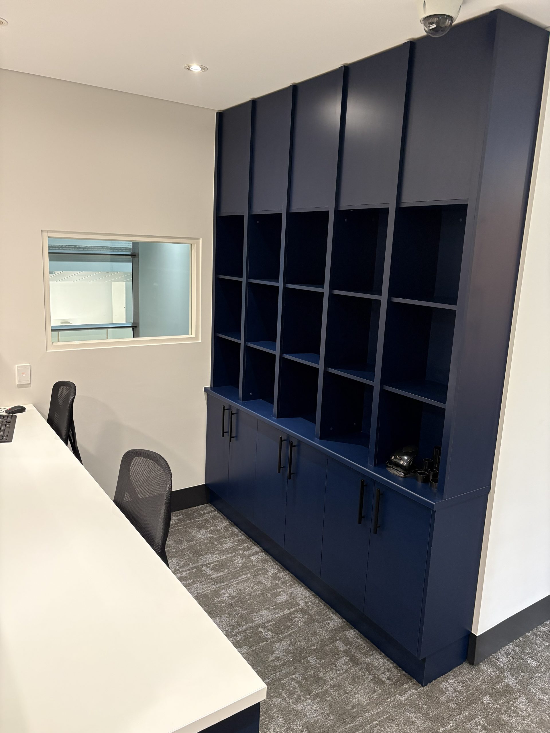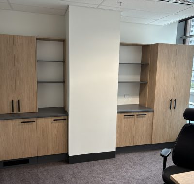 The team at CFM (Aust) are currently working on Melbourne Law Courts fit out and have now completed Level 7 and 10. The reception came up a treat with Laminex Scallop 12mm on exterior and Laminex French Navy on back cupboards making a smart contrast. Polytec Boston Oak looks stylish in the Judges Chambers combines with CEO office of Dekton Stonika Bergen Polished top. Hardwearing Stainless Steel in Kitchenette set off the Laminex colour Fresh Spring Cabinets with Hafele Australia Matt Black Handles. The Lockers were made with Natural looking Nordic Oak Wordmatt finish with Digital Secura Black Locks with touch screen keypads. Look forward to seeing the next Stage of the Project.