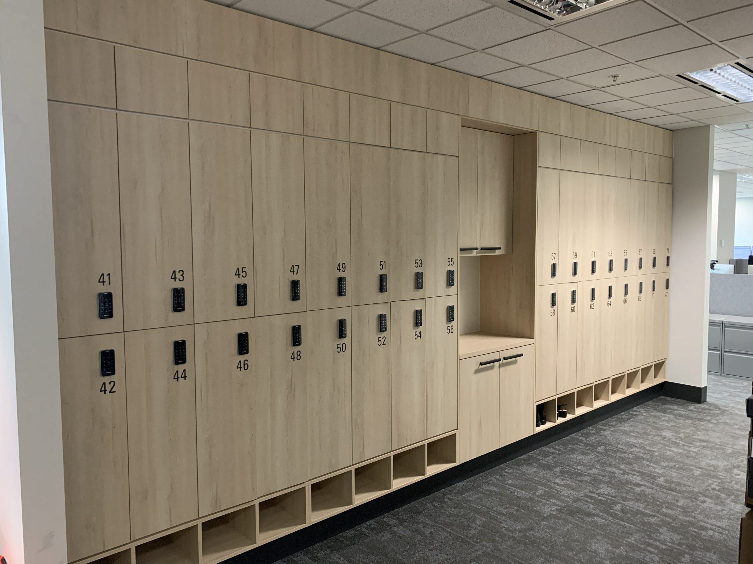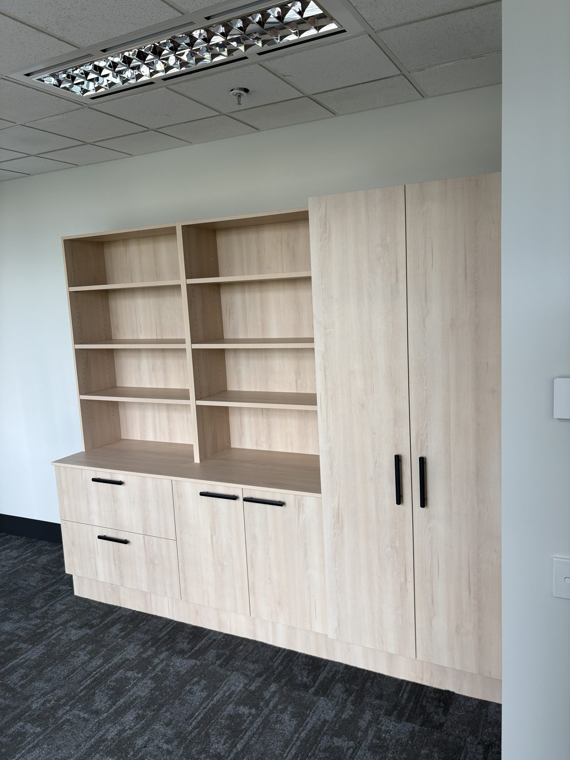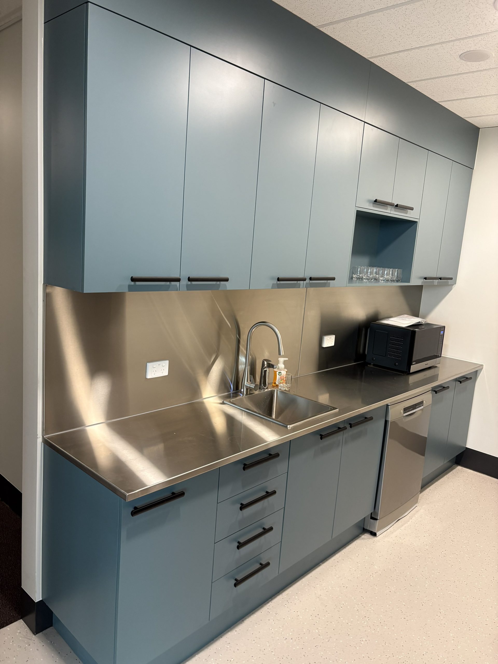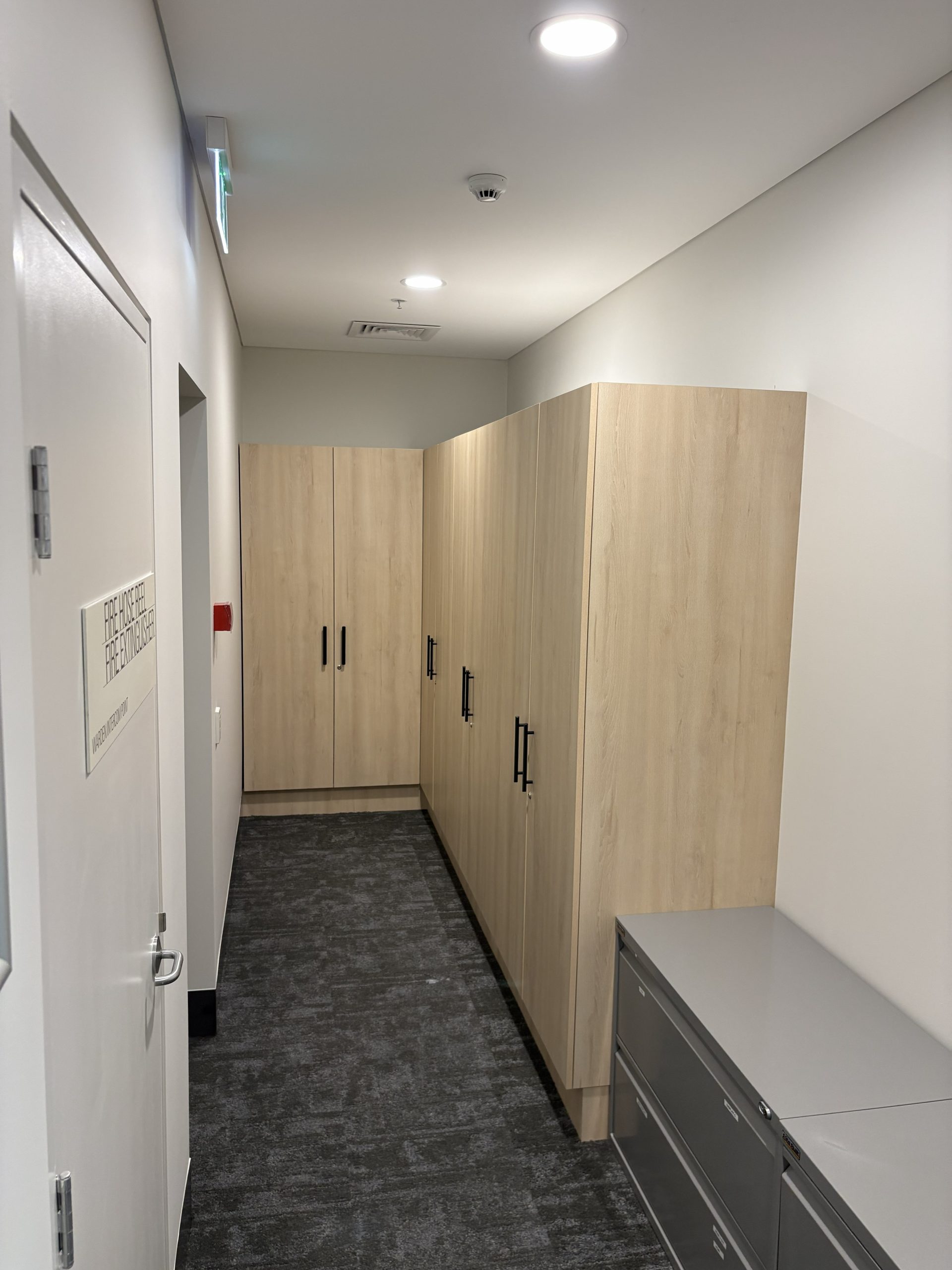 The team at CFM (Aust) are currently working on Melbourne Law Courts fit out and have now completed Level 7 and 10. The reception came up a treat with Laminex Scallop 12mm on exterior and Laminex French Navy on back cupboards making a smart contrast. Polytec Boston Oak looks stylish in the Judges Chambers combines with CEO office of Dekton Stonika Bergen Polished top. Hardwearing Stainless Steel in Kitchenette set off the Laminex colour Fresh Spring Cabinets with Hafele Australia Matt Black Handles. The Lockers were made with Natural looking Nordic Oak Wordmatt finish with Digital Secura Black Locks with touch screen keypads. Look forward to seeing the next Stage of the Project.